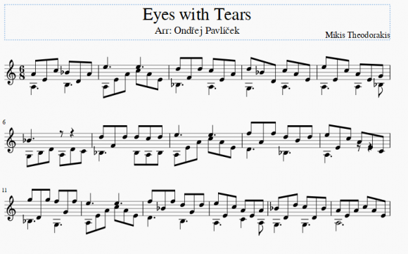Mikis Theodorakis: Eyes with Tears. Kytara sólo.